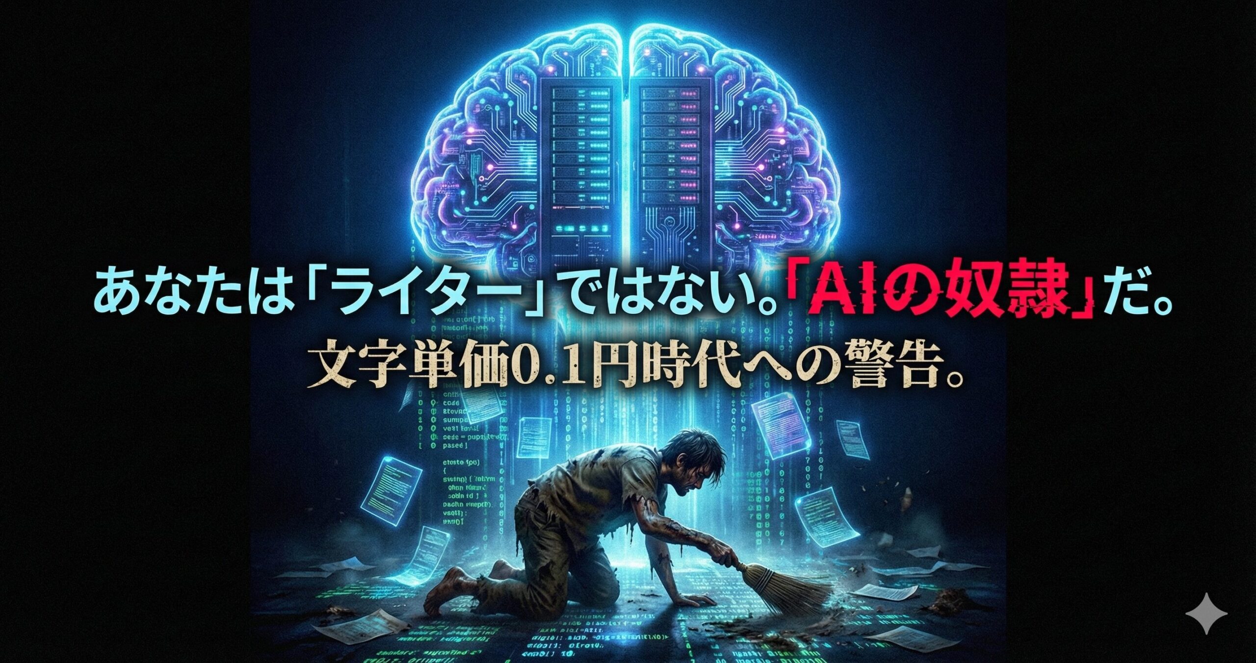 もしあなたが、今のまま「文章を書くこと(執筆)」を売りにし続けるなら、あなたの未来は、「AIの下請け奴隷」として確定します。